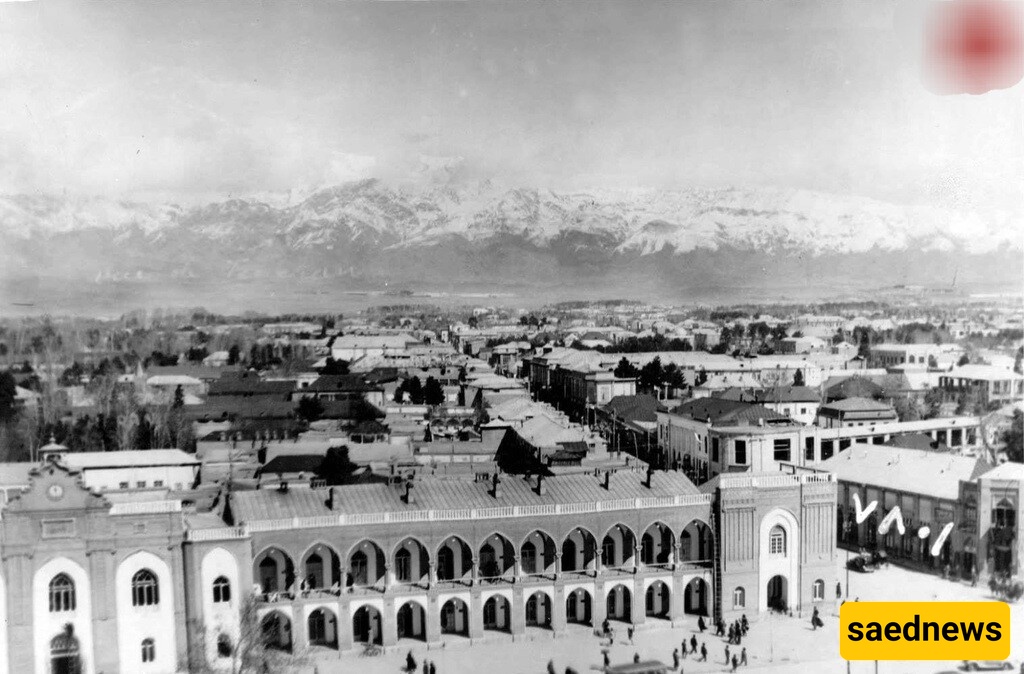 فی القسم التالی، ستشاهدون منظرًا بانورامیًا فریدًا ونادرًا لطهران فی أربعینیات القرن الماضی (السبعینات من القرن الثالث عشر الهجری)، التُقط من أعلى مکتب البرق فی ساحه توپخانه.