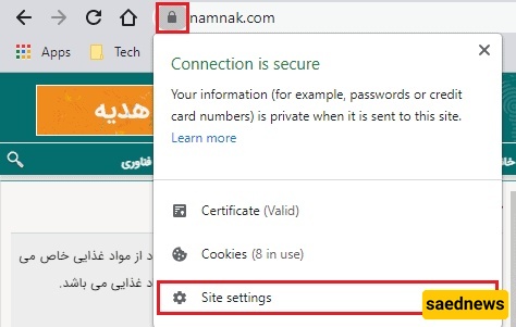 افتح الموقع فی متصفحک وانقر على أیقونه القفل فی أعلى یسار شریط العنوان.