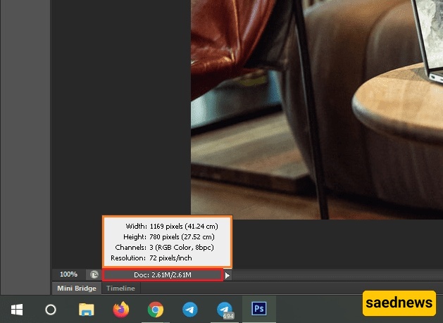 للتحقق من حجم ملف الصوره فی فوتوشوب، یمکنک اتباع الخطوات التالیه: