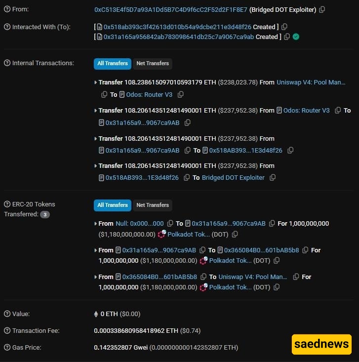 وفقًا لتقریر صادر عن منصه نوبیتکس (Nobitex) نقلًا عن ساعد نیوز ، استغلّ مهاجم ثغره أمنیه فی أحد الجسور (Bridge) وتمکّن من إنشاء 1 ملیار من رموز DOT الوهمیه غیر المدعومه.