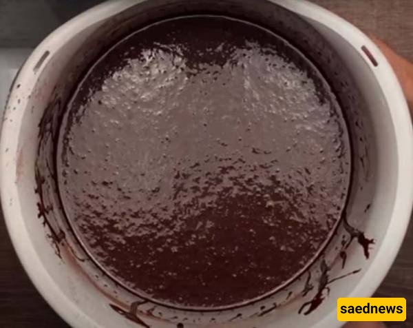 بعد إخراج الکعکه من الفرن وهی لا تزال ساخنه، اسکب العجینه المحفوظه مسبقًا على الوجه. اترکها لبضع دقائق لتتشرب الشوکولاته فی الکعکه. لتحسین الامتصاص، یمکنک عمل ثقوب صغیره على سطح الکعکه باستخدام عود أسنان.