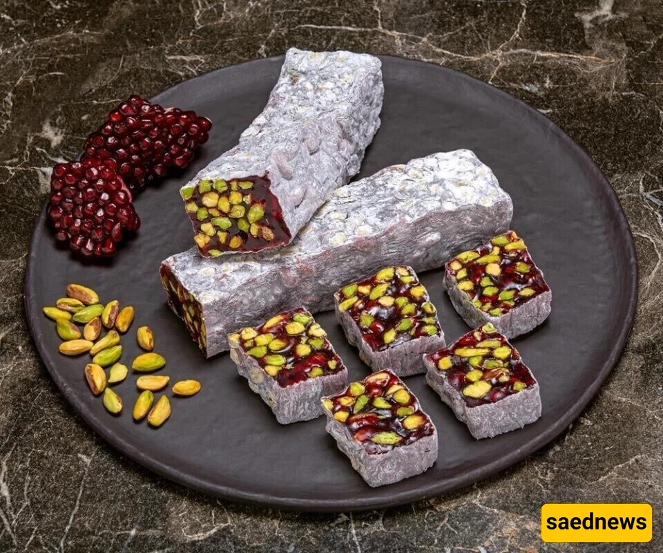 ساعدنیوز: حلوى الرمان والفستق الترکیه هی واحده من أشهى الحلویات التقلیدیه فی إیران، وتحظى بشعبیه خاصه خلال لیله یلدا. یجمع هذا المزیج بین حموضه حلوه للرمان ونکهه غنیه وعطره للفستق لیقدم تجربه طعم لا تُنسى.