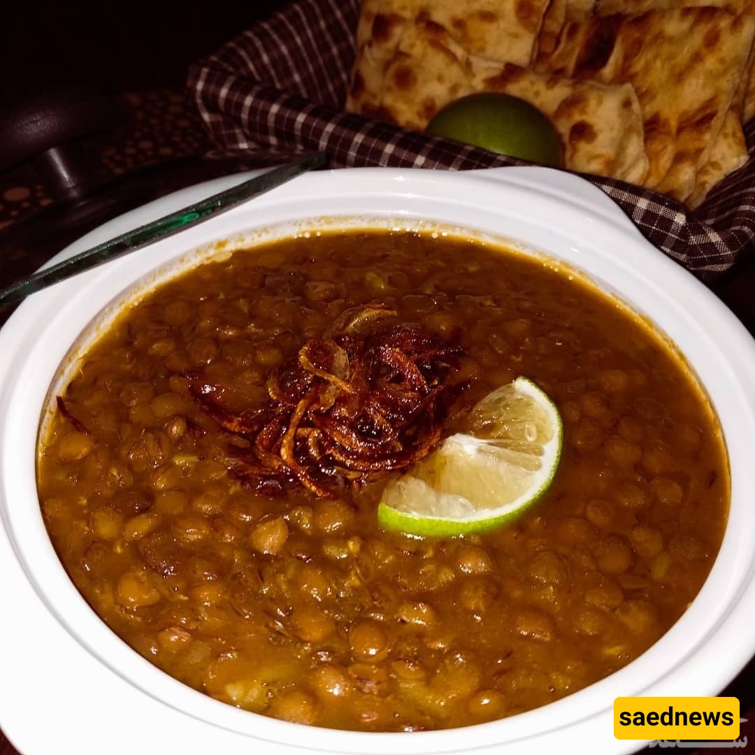 لا تُضاف اللحوم إلى العدسی؛ فهو طبق نباتی تقلیدی.