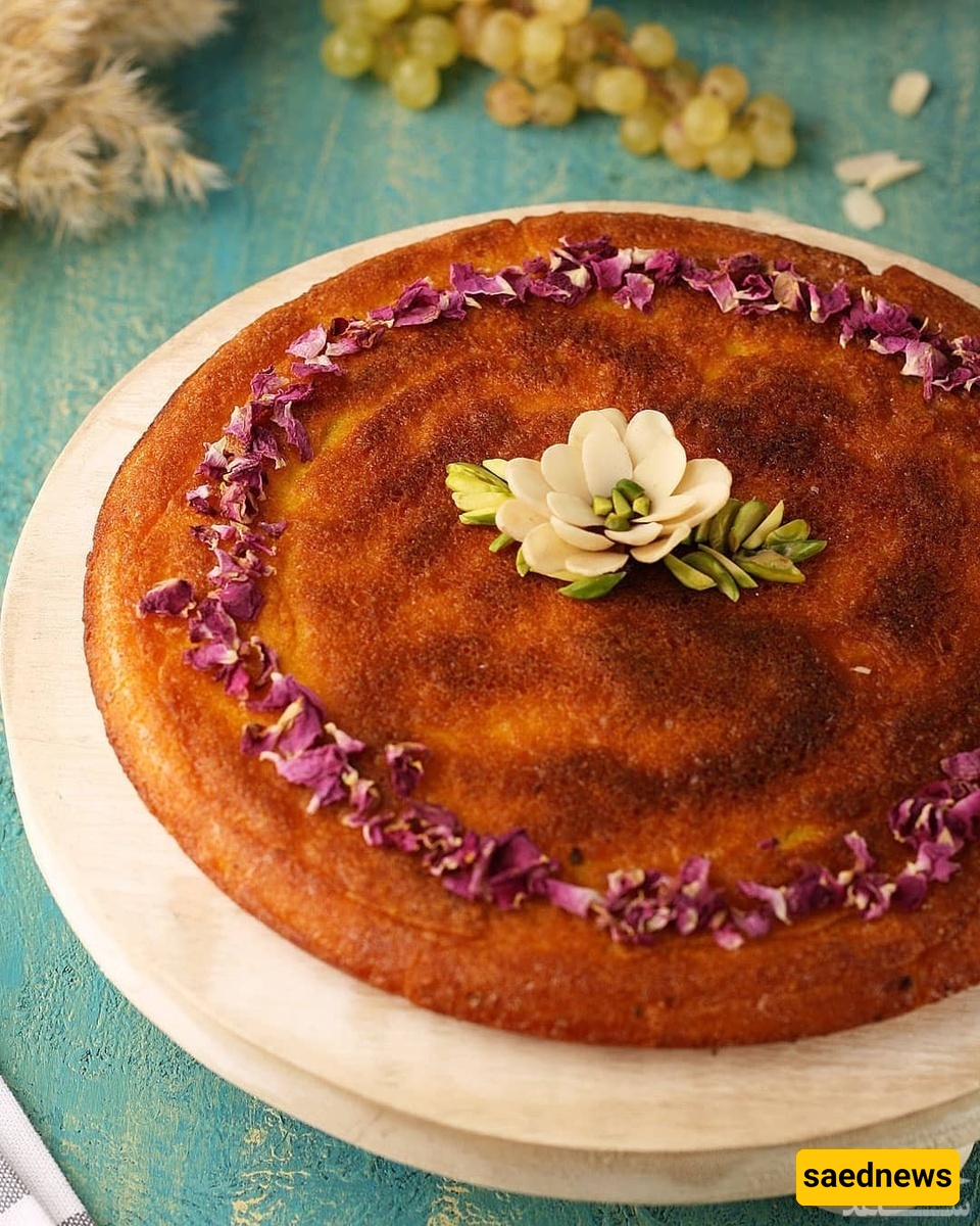 هذه الطریقه تقدم تقلیدیًا على الإفطار فی تبریز، وتمنح البروتین والکالسیوم والبوتاسیوم من البیض ومنتجات الألبان. للحصول على أفضل نکهه، حضر الکعک قبل ساعتین حتى یتشرب الشراب بالکامل. یمکن تعدیل مستوى الحلاوه حسب الرغبه.