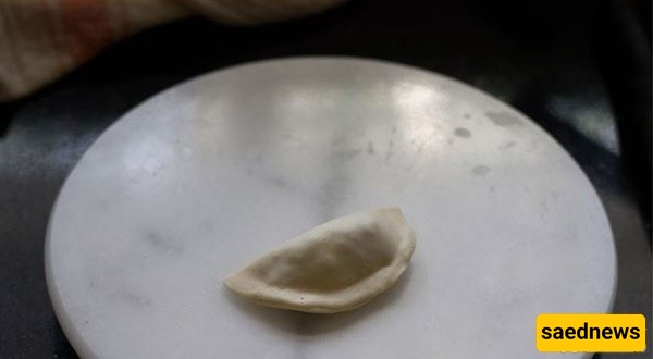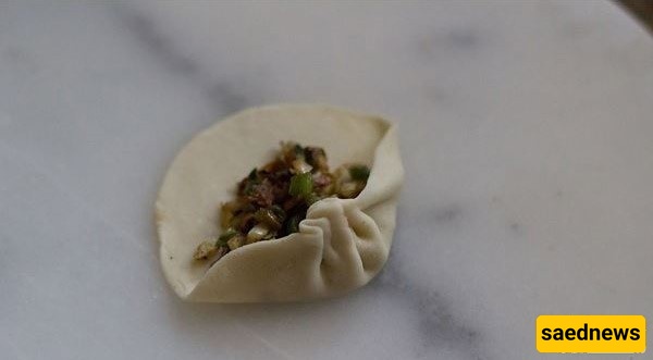 ارفع حافه العجینه وابدأ بطیّها على شکل طیات حول الحشوه.
