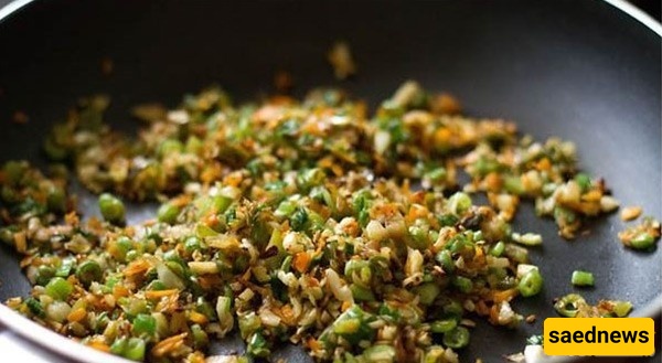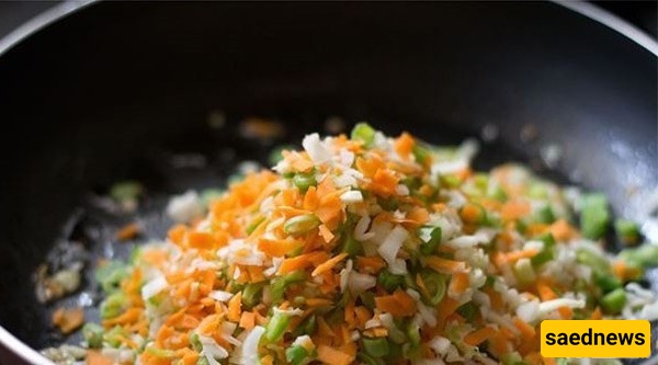 أضف الخضار المفرومه. إذا کانت المقلاه سمیکه، زد الحراره قلیلاً.