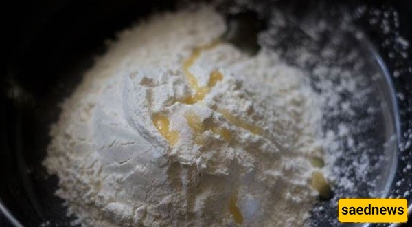أضف الماء تدریجیًا واعجن حتى تصبح العجینه ناعمه وغیر لاصقه.