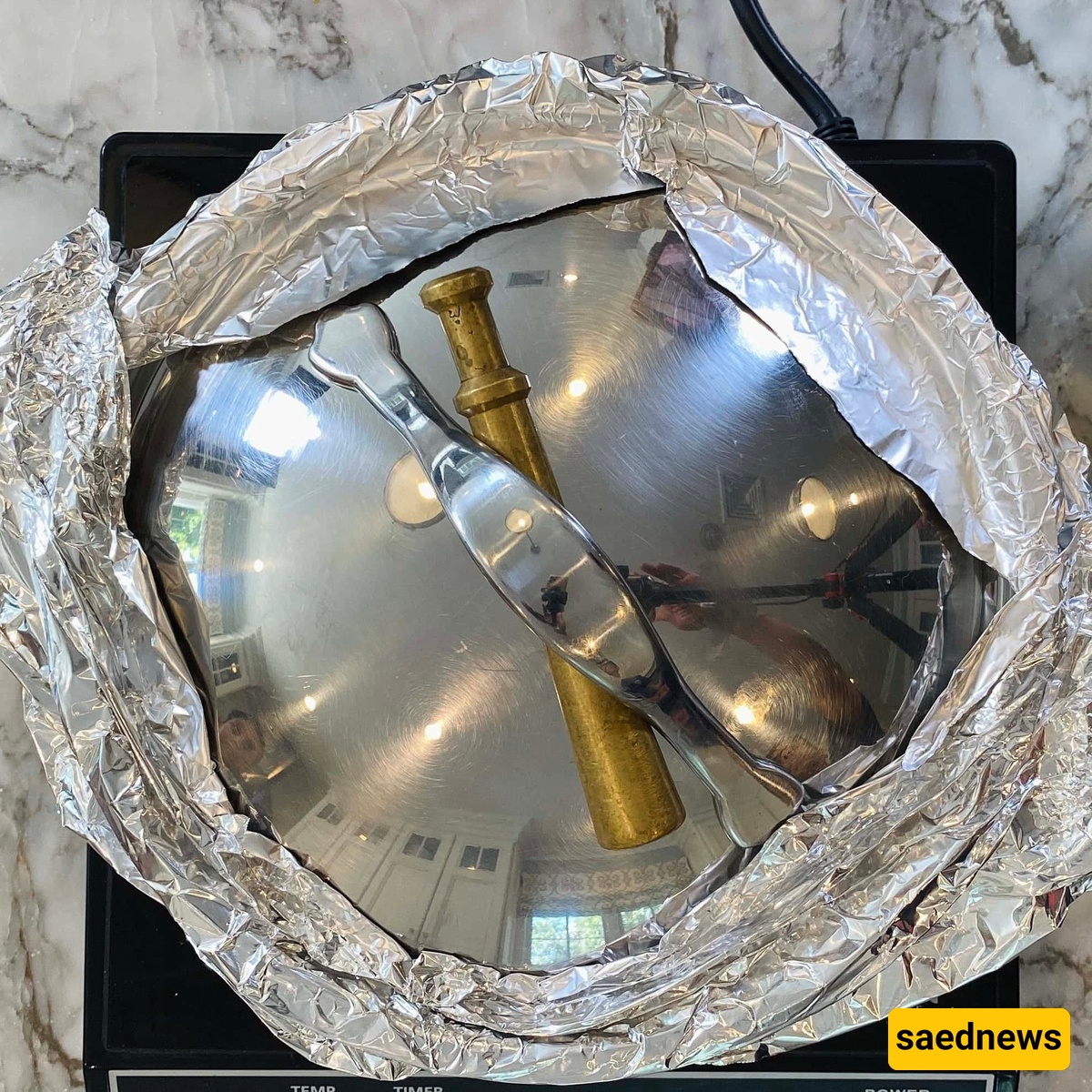 أغلق القدر بإحکام باستخدام ورق الألمنیوم والغطاء.