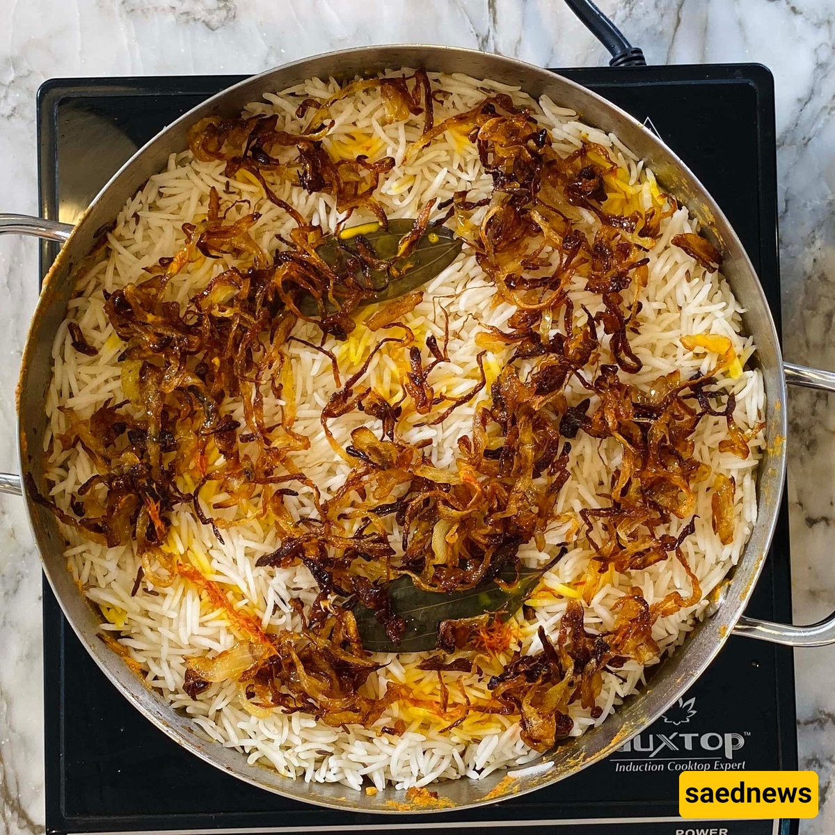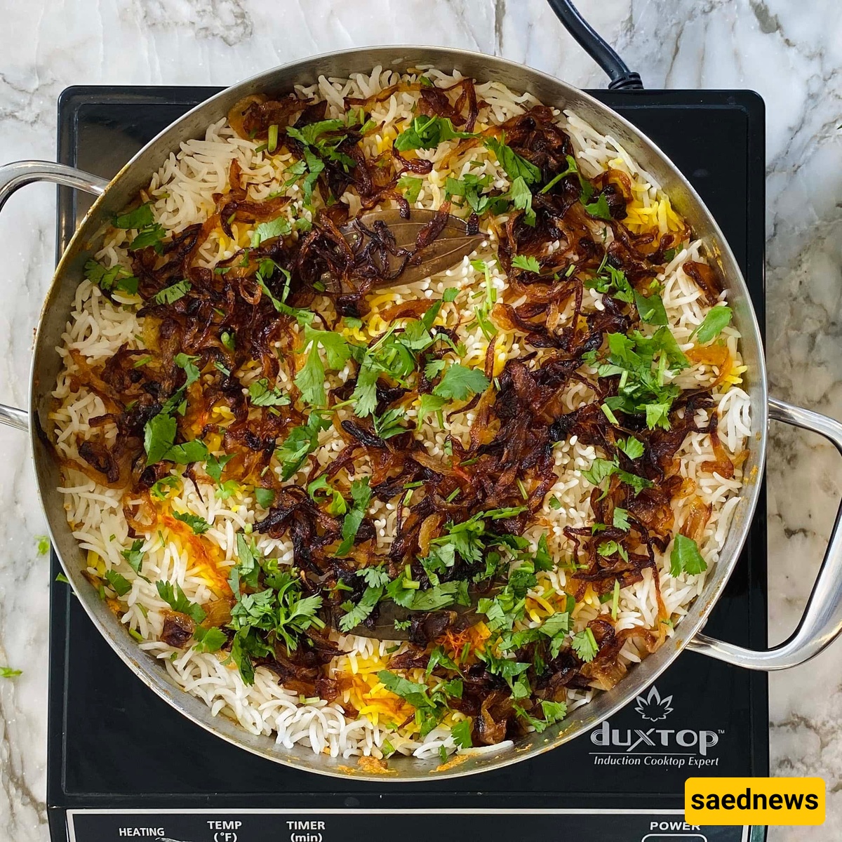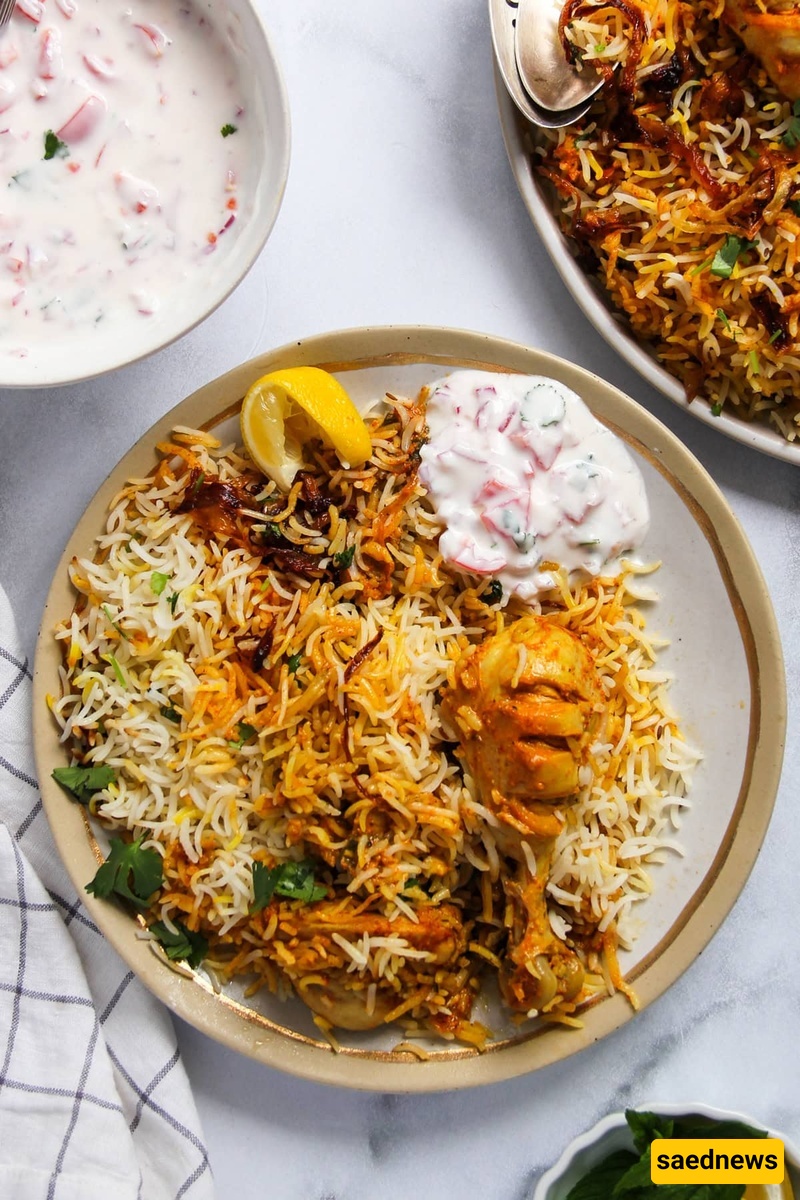 ساعدنیوز: أرز بسمتی طویل الحبه عطِر، یُرتّب بعنایه فوق قطع دجاج طریه منقوعه فی مزیج من التوابل الترابیه العطریه، ویُزیَّن بالبصل المُکرمل وخیوط الزعفران الرقیقه.کل لقمه تحمل انفجارًا من نکهات الهند الزاخره بالحیاه والتنوع.
