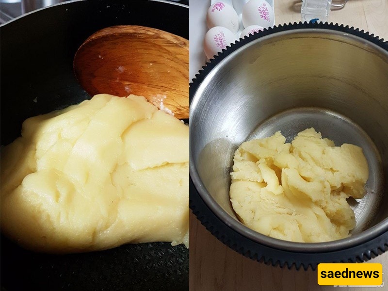یُغلى الماء مع الزبده، ثم یُضاف الدقیق ویُطهی، ثم یُضاف البیض تدریجیًا.