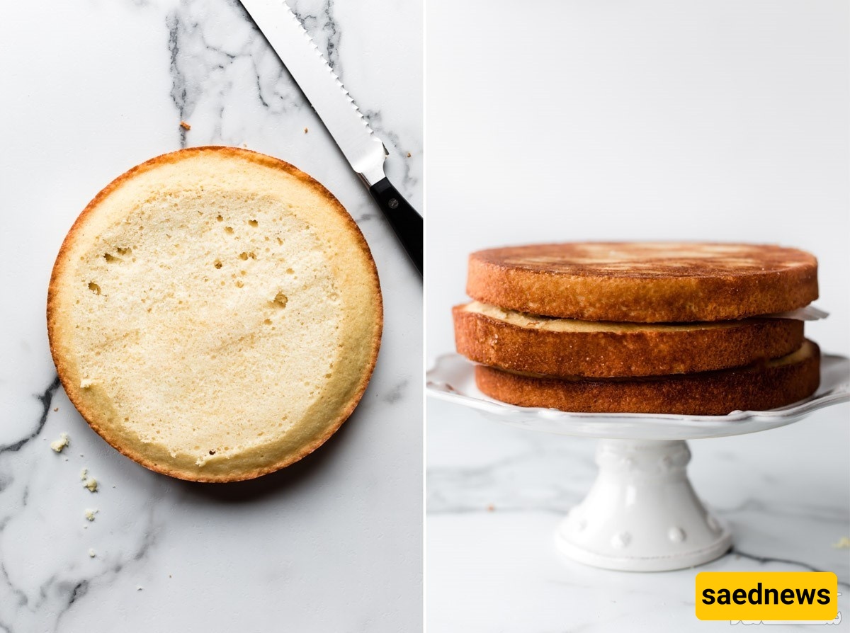 لفک القالب، تُبلل قاعده الطبق بالماء البارد، وتُفک الحواف بسکین، ثم تُقلب بحذر.