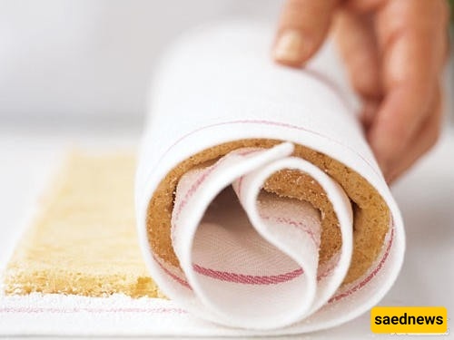 یُخبز لمده 10 دقائق فقط فی فرن شدید الحراره، ثم یُلف وهو دافئ لتجنب التشقق.