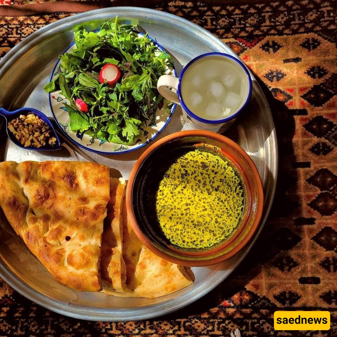 فی النهایه یُزیّن بالنعناع المقلی فی الزیت أو زیت کرمانشاهی (أو دهن الذیل إذا توفر)، ویُقدّم ساخنًا، ویفضل تناوله مع البصل النیء إلى جانبه.