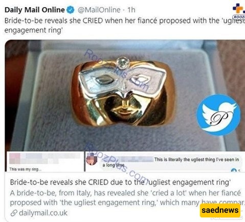 وفقًا لخدمه الفن والإعلام فی “ساعد نیوز”، شارکت امرأه إیطالیه صوره لخاتم خطوبتها الضخم وغیر المعتاد على فیسبوک، وقالت إنها شعرت بالأذى وحتى بکت بعد أن سخر منها من حولها.