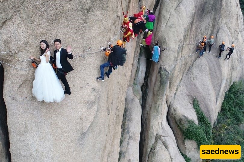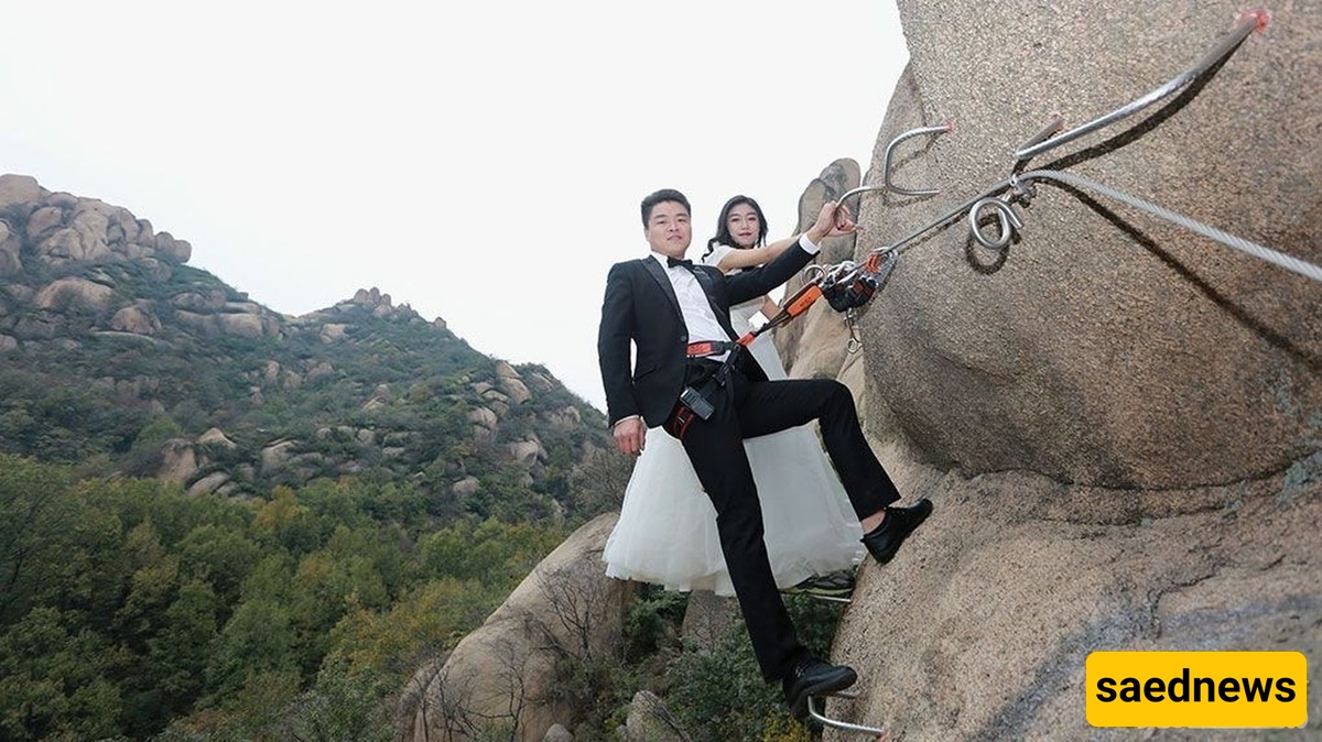 وفقًا لأخبار ساعدنیوز، اتخذ زوجان صینیان قرارًا غیر مألوف بصعود منحدرات جبل زومادیان الخطره فی مقاطعه هینان بالصین للاحتفال بیوم زفافهما.