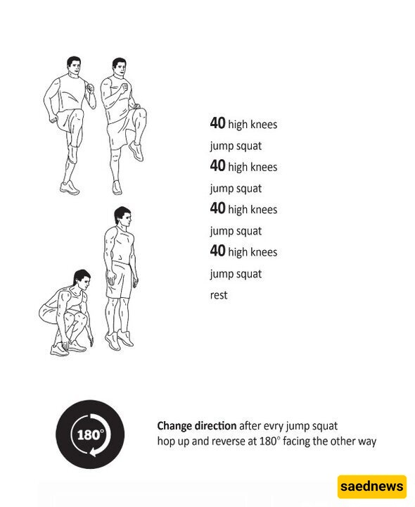 تغییر بسیط فی طریقه أداء التمارین یمکن أن یؤدی إلى نتائج مدهشه. فی هذا الروتین، بعد کل مره تلمس فیها قدماک الأرض، یؤدی تغییر الاتجاه إلى إضافه تنوع للتدریب ویجبر الجسم على الحفاظ على التوازن ومقاومه السقوط.