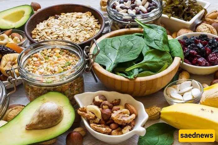 مصادره: المأکولات البحریه، الحبوب الکامله، الخضروات الورقیه، واللحوم الحمراء.