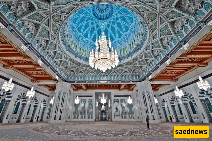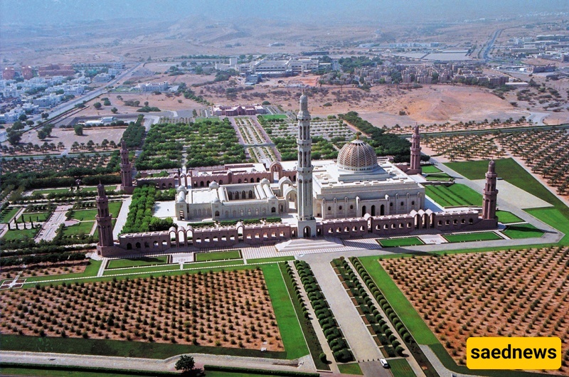 بُنی جامع السلطان قابوس الأکبر فی عمان بتکلیف من السلطان قابوس بن سعید عام 1992، ویُعد مثالًا بارزًا على العماره الإسلامیه. یتمیز المسجد بخمسه مآذن: واحده مرکزیه ارتفاعها 90 مترًا وأربع أصغر ارتفاعها 45.5 مترًا. ترتفع القبه الرئیسیه 50 مترًا فوق قاعه الصلاه التی تتسع لـ 6500 مصلی، بینما یمکن للفناء والمناطق الخارجیه استیعاب عشرات الآلاف.