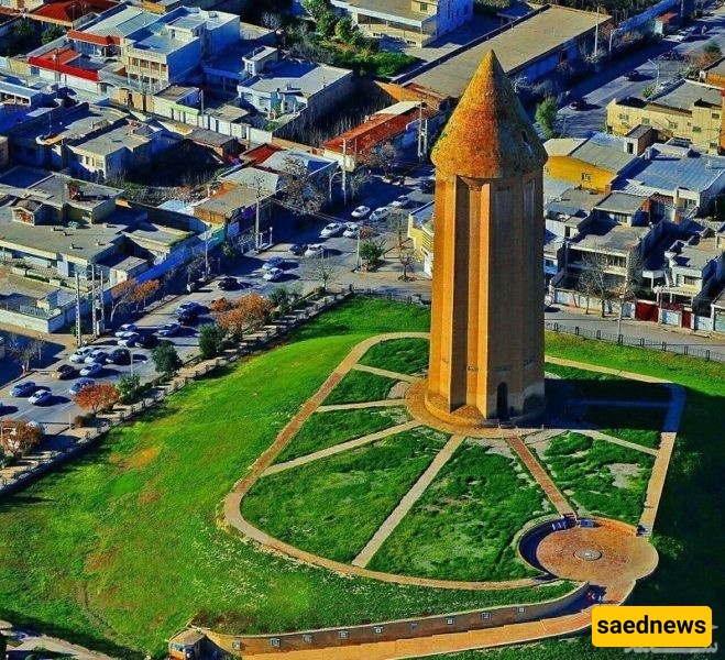 بحسب خدمه السیاحه فی ساعدنیوز، فإن هذا البناء—الذی یُعترف به باعتباره أطول برج مبنی بالکامل من الطوب فی العالم—یقع فوق تلّ ترابی یرتفع حوالی خمسه عشر مترًا عن مستوى الأرض المحیطه. ویبلغ الارتفاع الکلی للنصب، بما فی ذلک أساسه، 72 مترًا. وقد شُیّد عام 375 هـ فی عهد قابوس بن وشمگیر فی مدینه جُرجان (گنبد قابوس حالیًا)، التی کانت عاصمه الدوله الزیاریه.